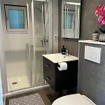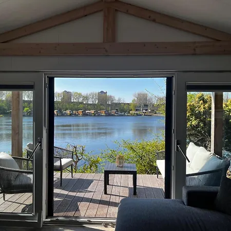 Tot de badkamerfaciliteiten van de gesitueerde in Hoevelaken Luxe Nieuwbouw Chalet Aan Het Water behoren ook een apart toilet en een douche. Badlakens zijn inbegrepen voor extra comfort.
